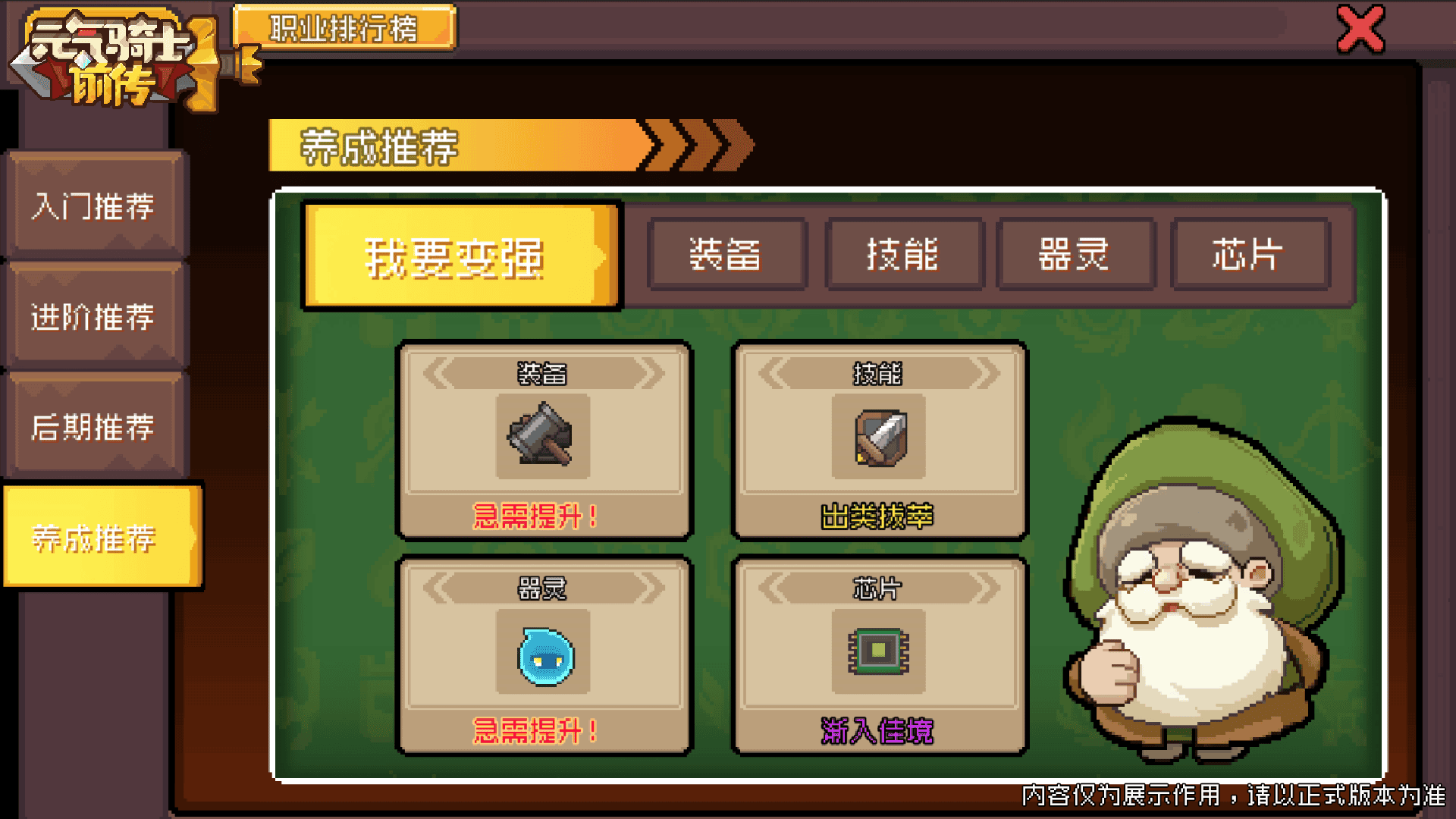温馨提示:养成推荐仅作为参考,小骑士可以结合实际体验自行养成哦!